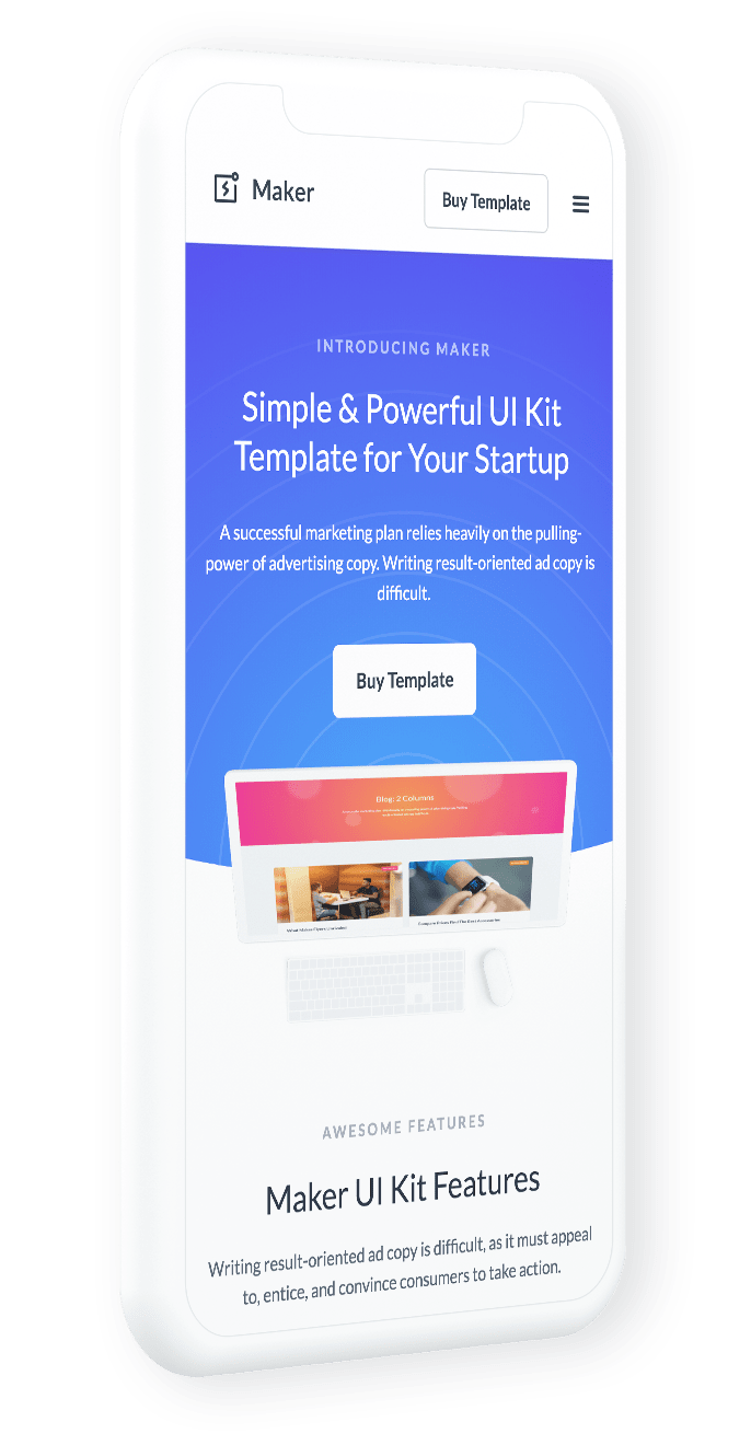 Maker is a stunning UI kit template. With a huge pack of the most popular components you can finaly build a perfect website for your startup.